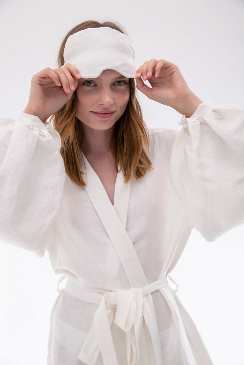 This elegant organic 100% handwoven silk eye mask is perfect for beauty sleep lovers and travelers. It is an ideal breathable sleep aid and soothing eye relaxer. Front and back of the mask are made of pure silk.